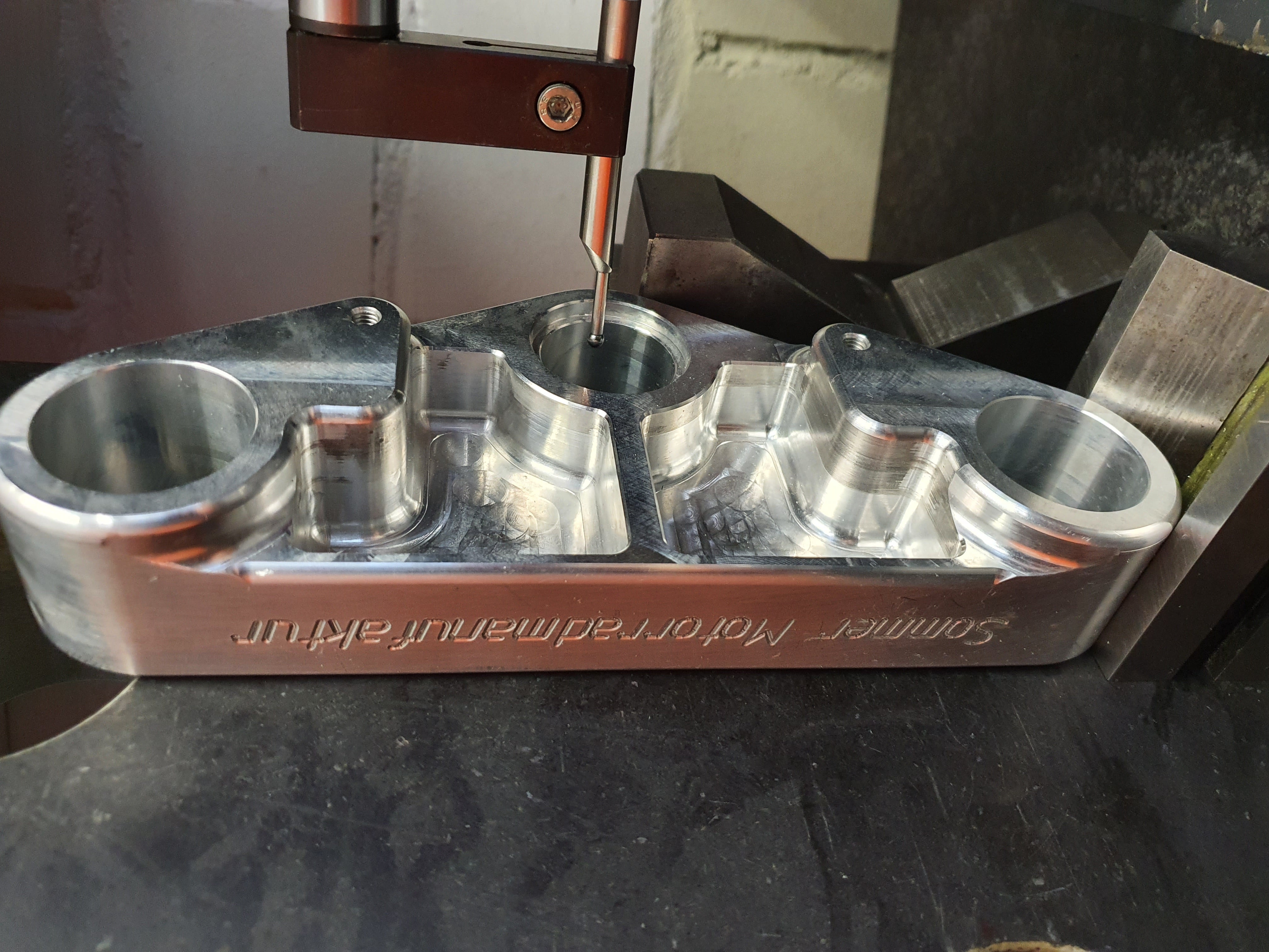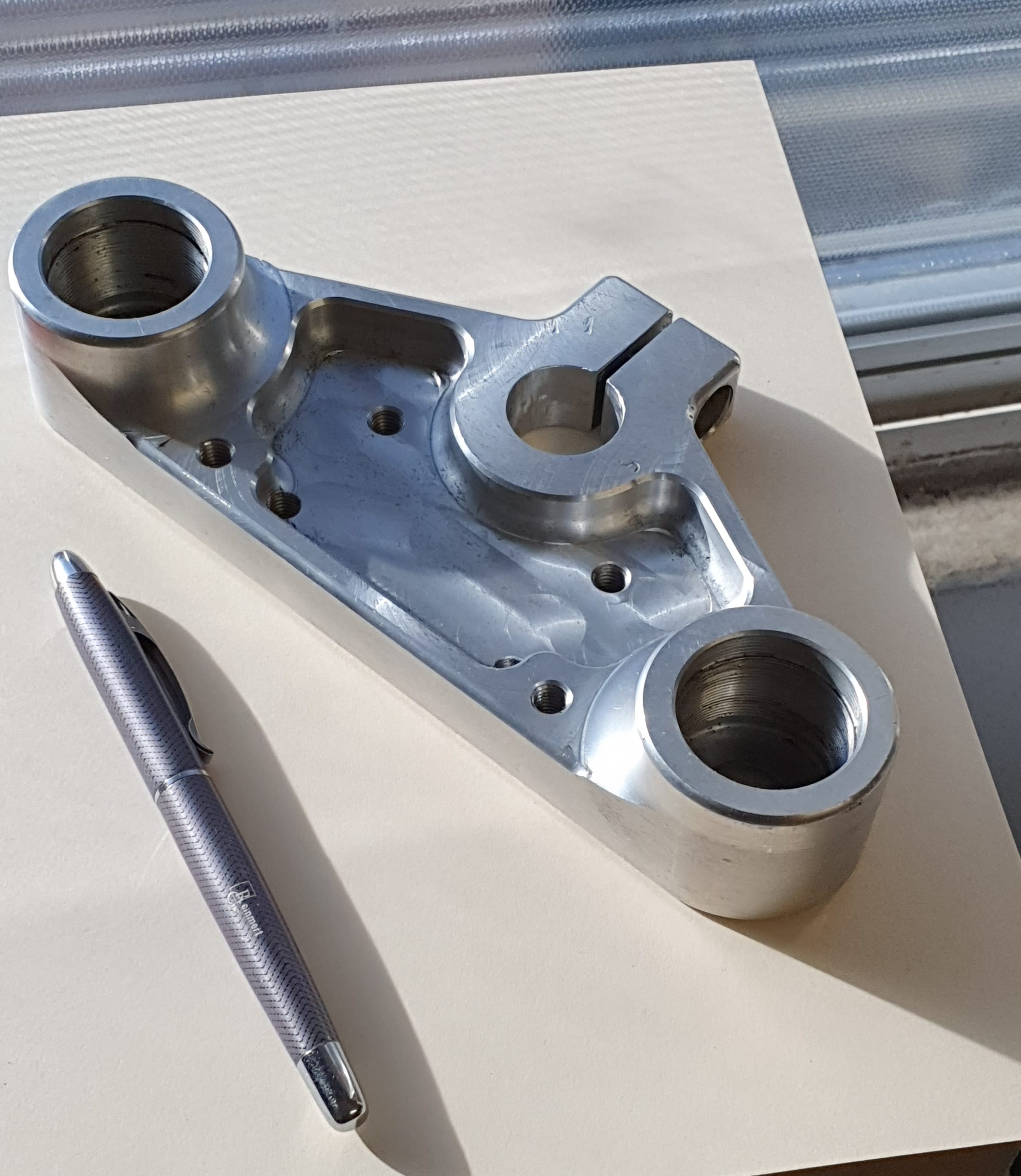 - Gabelbrücke oben in 2-Spannungen kpl. gefräßt und mit Feingewinde für die Lenkrohre versehen