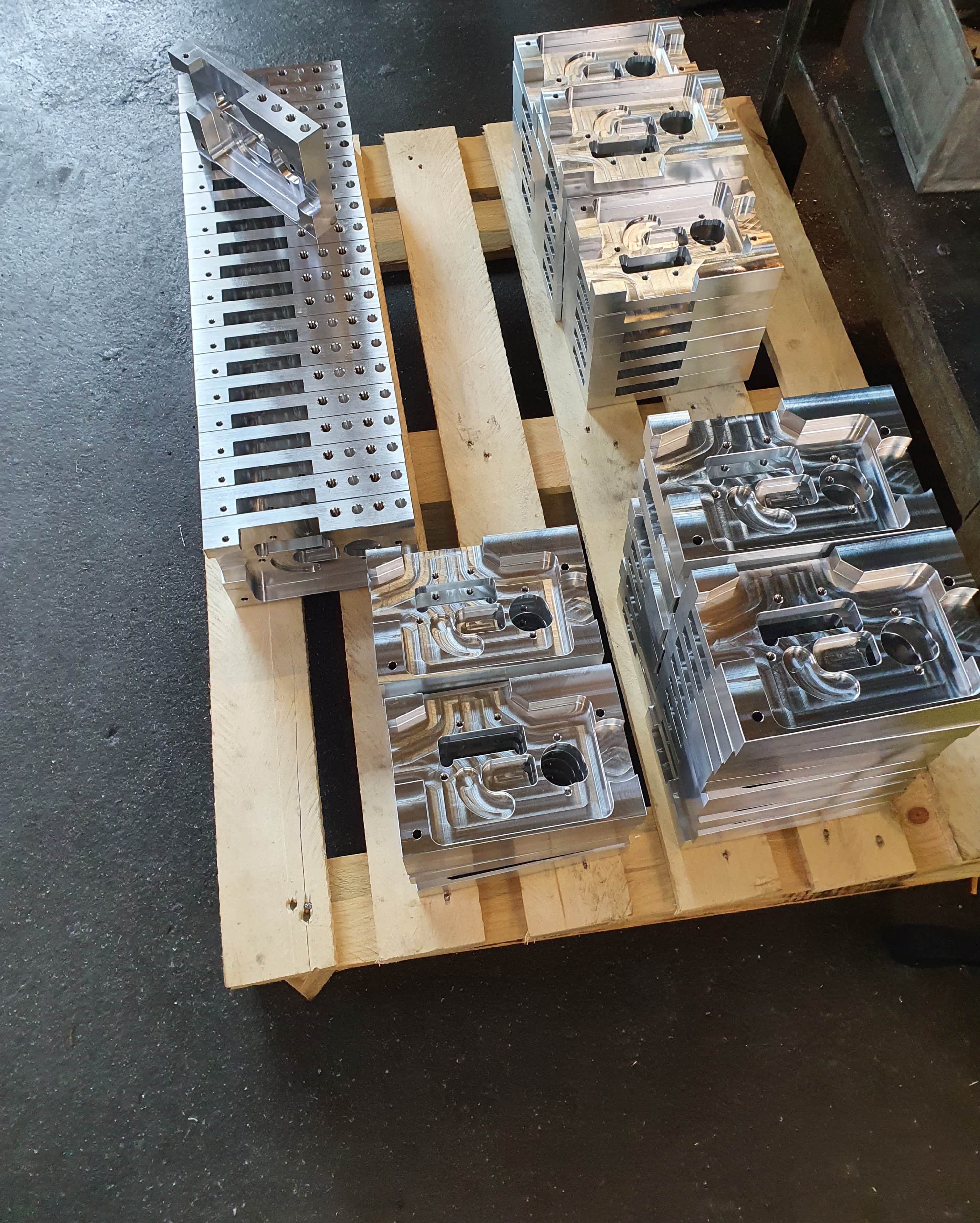 - Zuschnitte aus Sonderaluminium vorgeschruppt und geschlichtet. Anschließend die Langlöcher in allen vier Stirnseiten gefrässt.